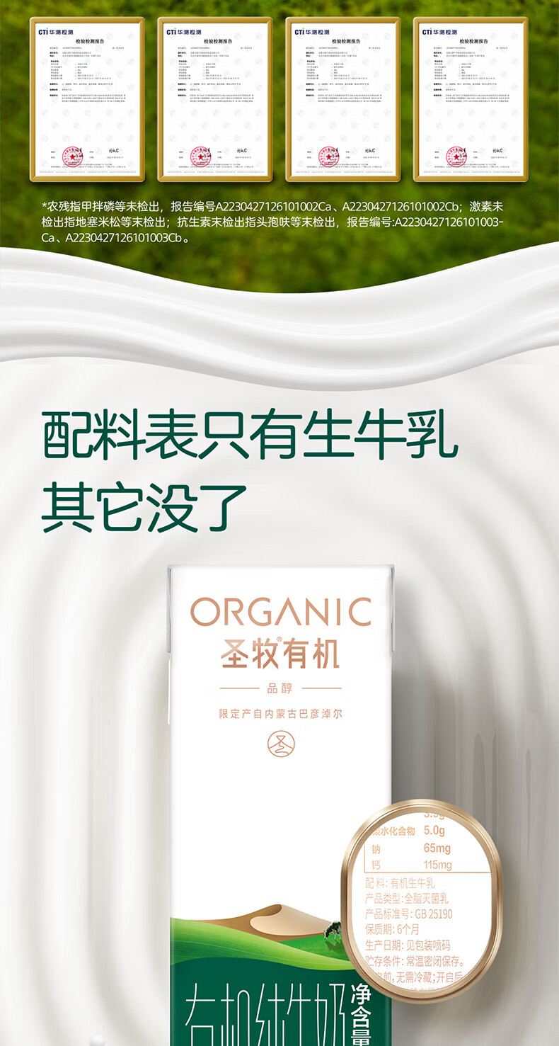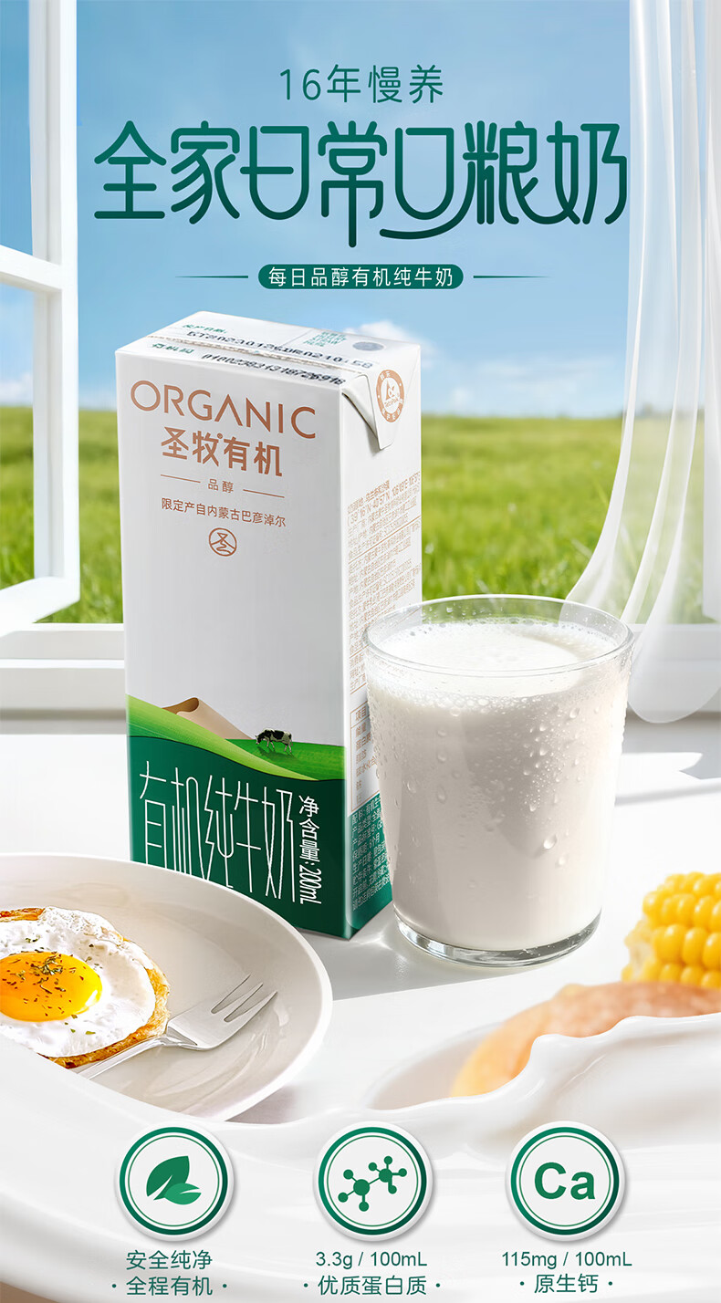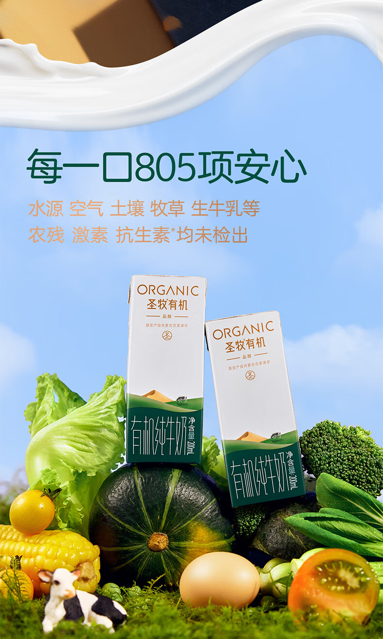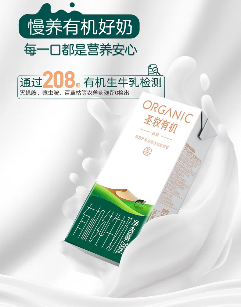 圣牧有机纯牛奶 品醇200ml*10盒 安全纯净 早餐奶 年货送礼礼盒