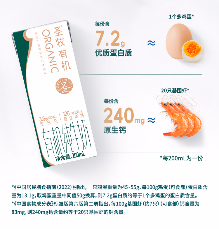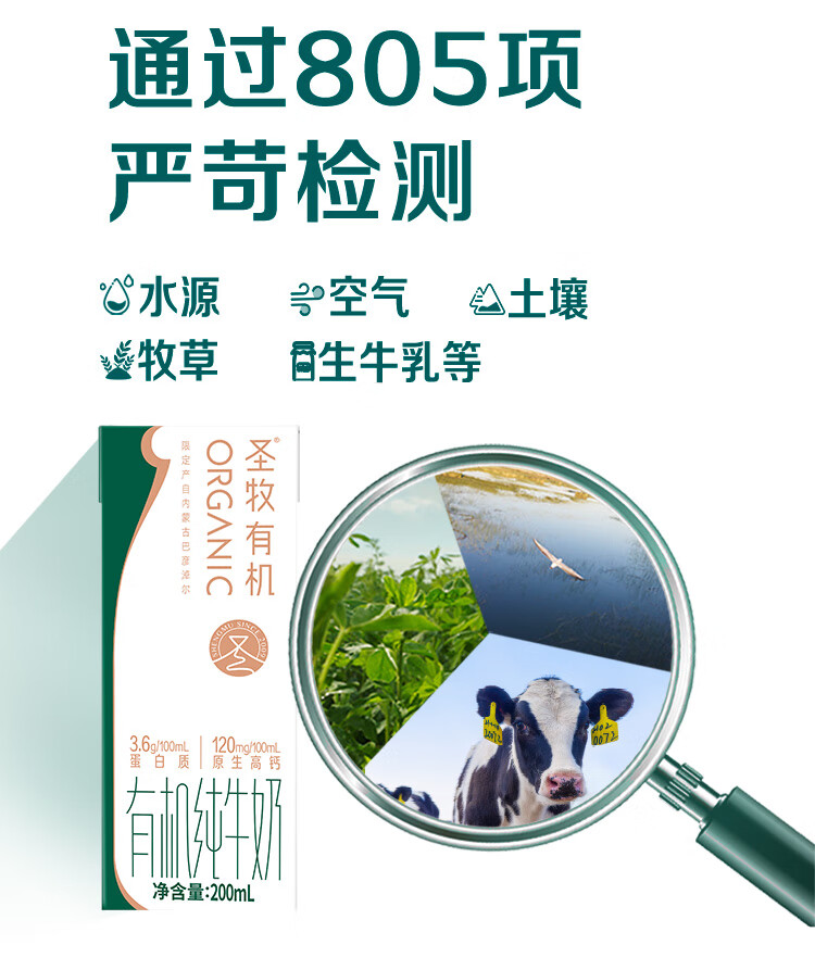 圣牧有机纯牛奶3.6g蛋白 200ml*10盒高钙牛奶家庭装早餐奶