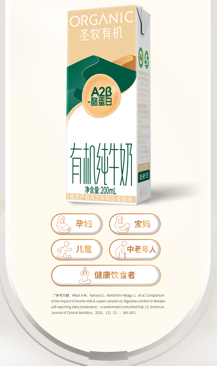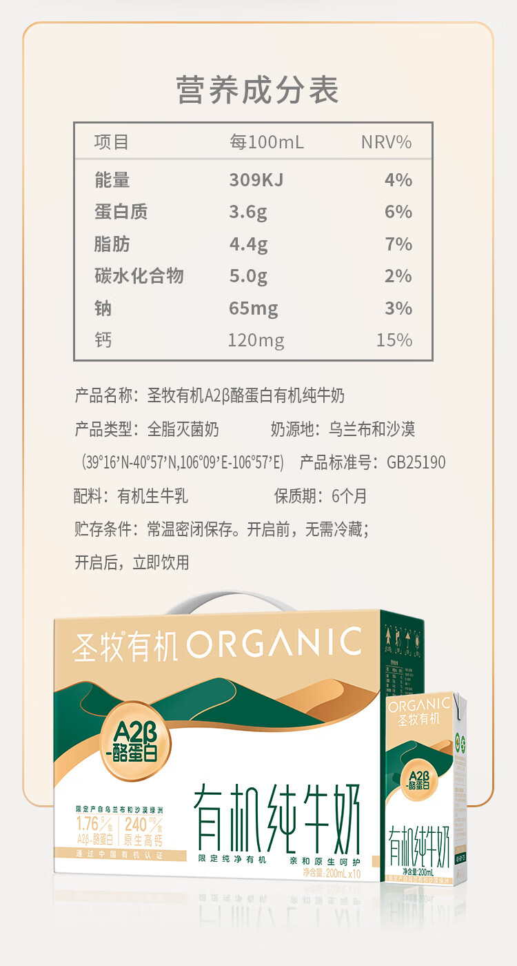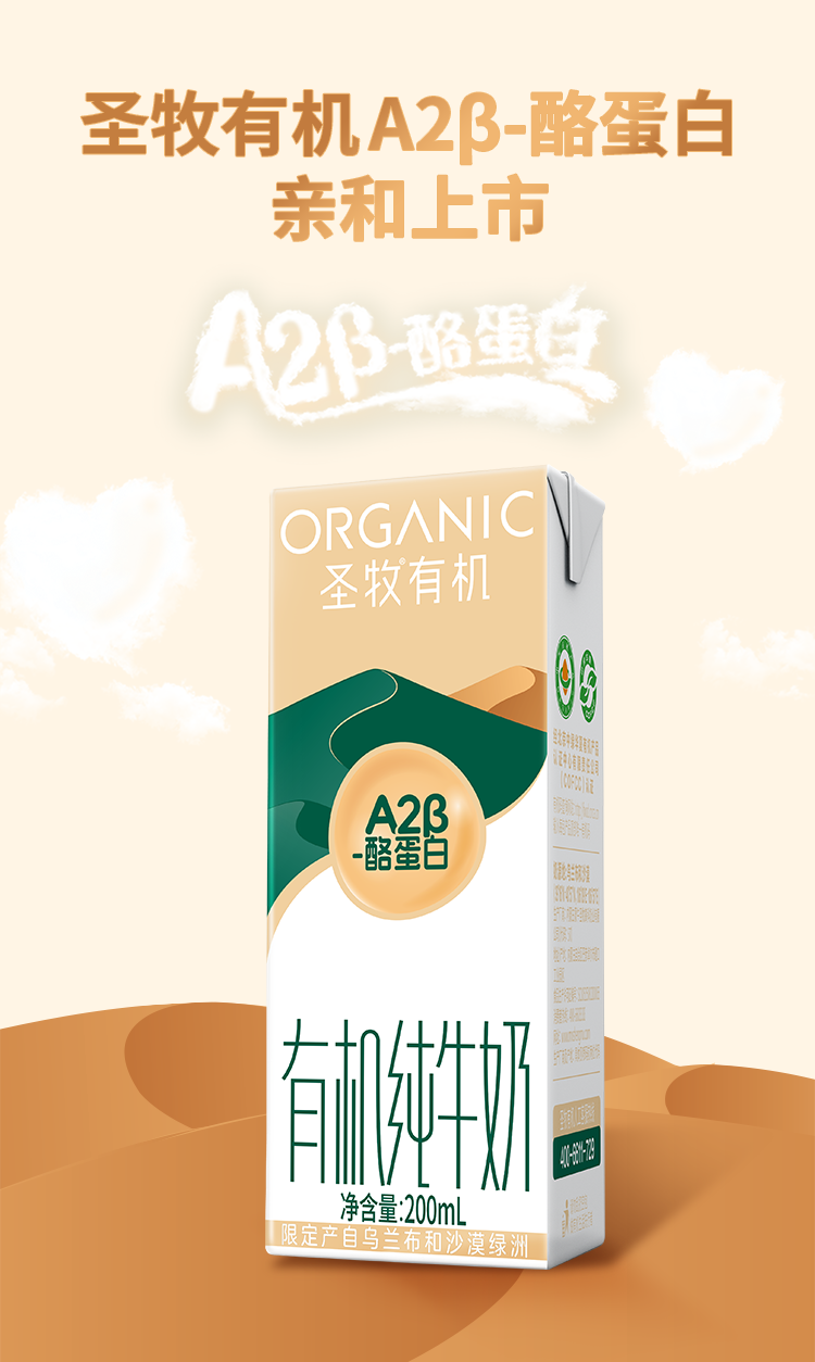 圣牧A2有机奶纯牛奶 A2β-酪蛋白200ml*10盒 3.6g原生蛋白 专注有机